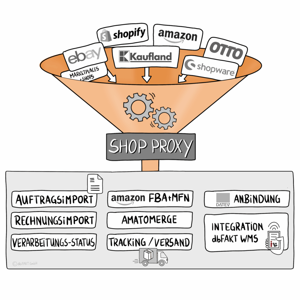 Sie erhalten ein sicheres, stabiles und vollständig integriertes Softwaresystem für Ihren Handel. Warenwirtschaft, das WMS MoinLog sowie Shop-Proxy und/oder Shopsystem greifen nahtlos ineinander und bilden durchgängige Prozesse – vom Artikel über Ihr Lager bis zum Versand.