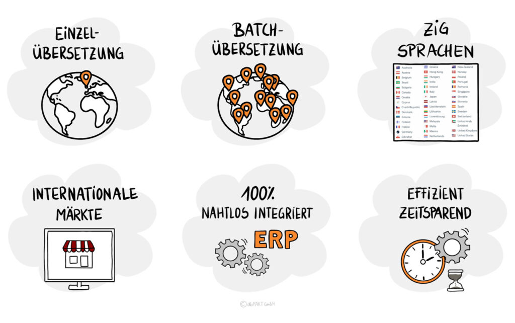 Der Schlüssel zum internationalen Erfolg ist einfach: Sprechen Sie die Sprache Ihrer Kunden. Genau hier setzt unsere integrierte DeepL-Schnittstelle an. Sie ermöglicht professionelle, KI-gestützte Übersetzungen direkt aus Ihrer gewohnten Systemumgebung – schnell, effizient und skalierbar.
